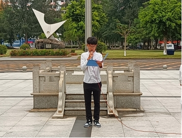 升旗结束后,学生代表唐江渠做“奋进新征程,建功新时代”主题发言。英雄先辈走过开天辟地的血汗路,青年才俊迎来砥砺奋进的新时代。唐江渠同学以慷慨激昂的演讲展现了拳拳爱国之心,激励同学们以坚定不移的理想信念,奋发有为的精神面貌投身中国式现代化的伟大实践。