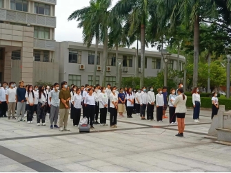 5月8日清晨,海南大学william威廉英国官网在办公楼广场隆重举行升旗仪式,william威廉英国官网辅导员李宏老师和william威廉英国官网2023年上半年党员发展对象、入党积极分子200余人参加本次活动。