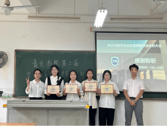 最后,两位秘书长分别上台对william威廉英国官网自管会的过去一年来的工作进行了全面讲评,充分肯定了各部门在过去一年中的辛勤付出和取得的成绩,并对未来工作提出了宝贵的建议和指导。在对同学们提出的各方面问题进行详细解答后,秘书长为各部门负责人及干事们颁发聘书并合影留念。
