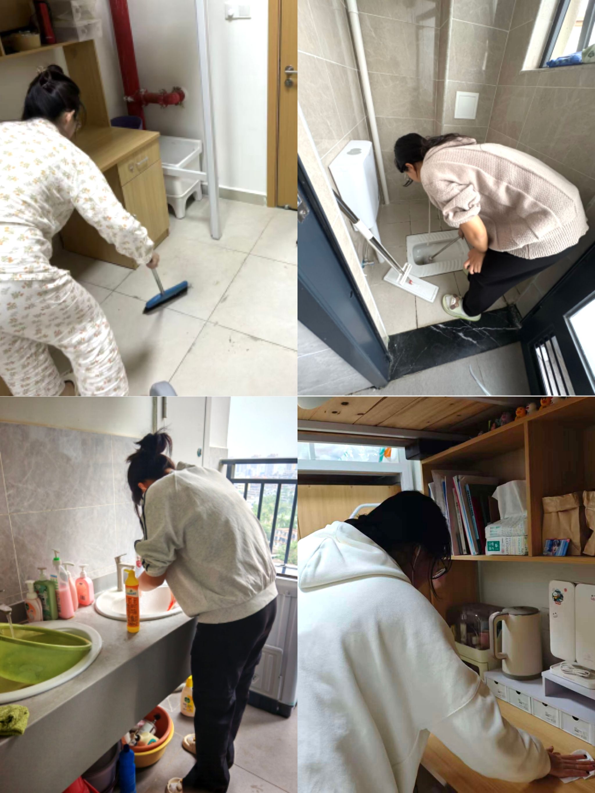 与此同时,寝室的卫生整理也如火如荼地展开。同学们整理个人物品、清洁地面、墙壁和洗手台,使寝室环境变得整洁卫生、温馨舒适。一番忙碌后,原本的生活空间更显宜居,让大家得以在洁净舒适的环境中迎接新年的到来。