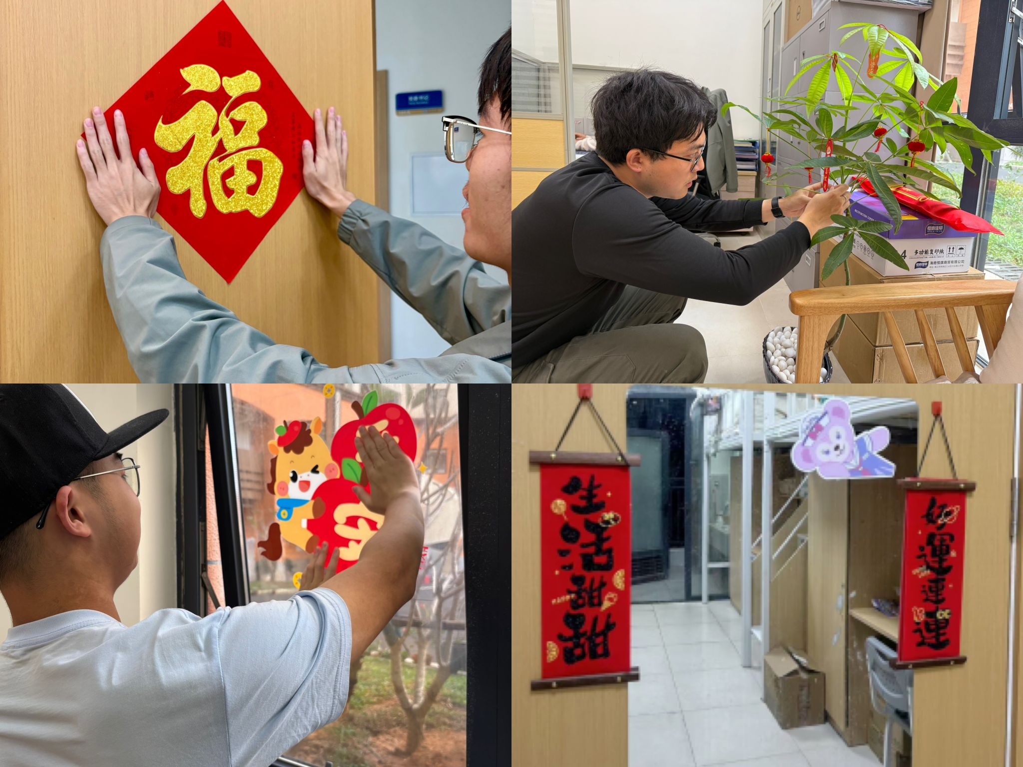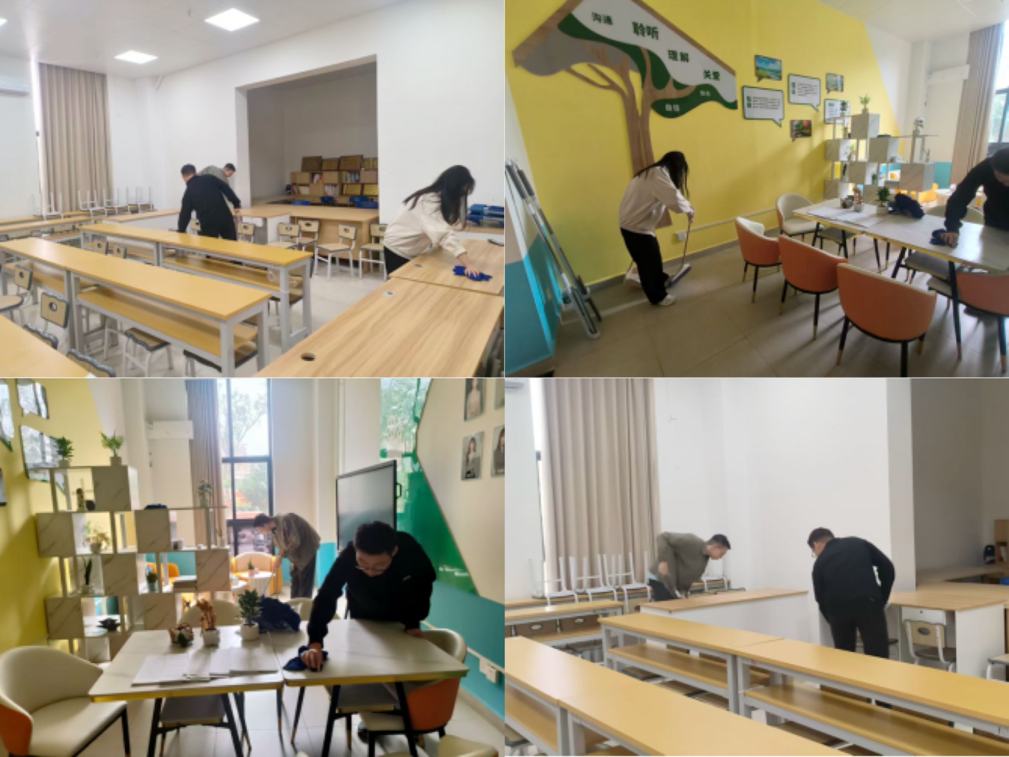 师生们一起对书院公共空间进行了打扫和装饰。大家分工明确,各司其职,迅速行动。在大家共同的努力下,社区内变得窗明几净,井然有序,节日氛围满满。
