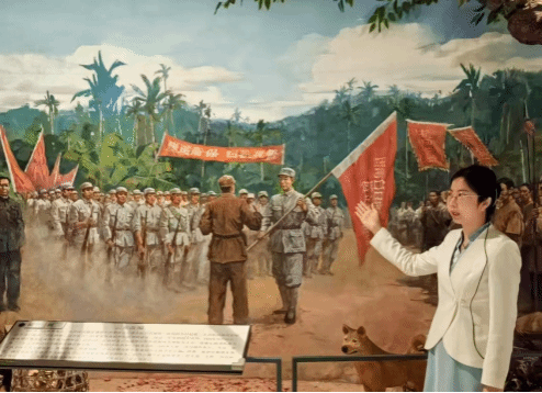随后,大家来到了以“琼崖革命二十三年红旗不倒的历史”为主线的第二展厅。通过大革命的洪流、土地革命风雷、抗日战争烽火、解放战争凯歌等四个单元,生动再现了中国共产党领导的琼崖革命武装斗争的壮丽画卷。在展厅中,大家仿佛穿越时空,回到了那个烽火连天的年代,感受革命先辈们不屈不挠、英勇奋斗的精神。