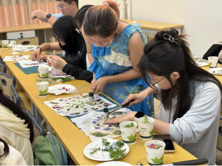 此次非遗植物拓染课程,以自然为笔、草木为墨,不仅是一场手工艺术的体验,更是一次回溯历史、传承非遗的文化寻根,让古老技艺在现代生活中焕发生机。同时,课程也进一步铸牢中华民族共同体意识,绘就出邻里和谐、文化共融的美好画卷。
