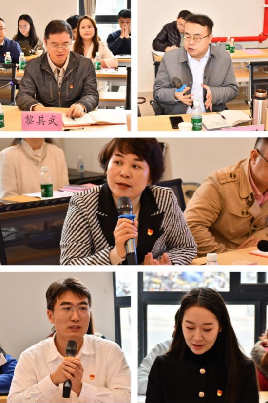 在交流发言环节中,蒙秋妍、黎其武、郭文涛、郭宏璟、焦译漫五位老师,陈烁琳、黄灿两位同学依次发言。他们结合自身经历和实际情况,分享了关于师德师风建设和思政教育的见解和体会,为参会人员提供了新的思路和启示。