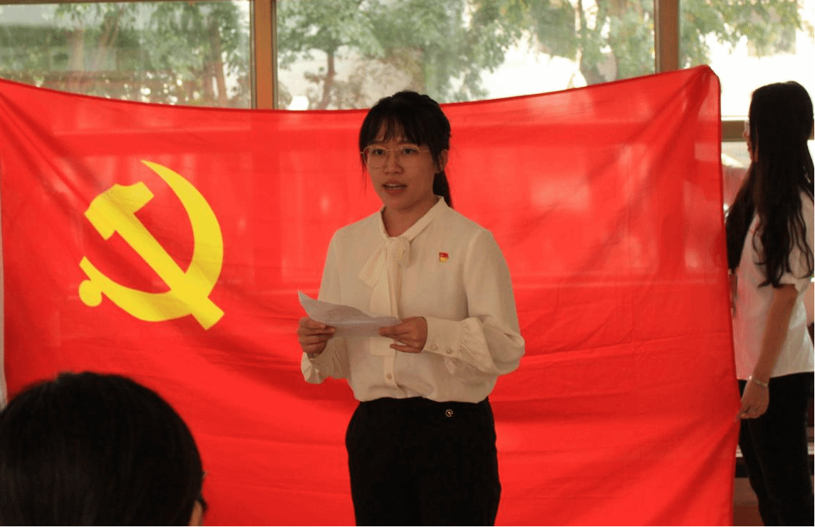 学生代表孙凡喻同学代表新党员做表态发言,作为一名新时代的中国青年,应当成为时代的先锋者、创新者和贡献者,用青春时光诠释共产党人的初心使命,为新时代谱写青春的歌、发挥青年力量。