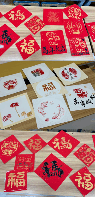 经过同学们一番精心制作,一幅幅色彩鲜艳、寓意吉祥的年画版画逐渐成型。看着自己亲手拓印的“福”字、生肖图案等作品,同学们脸上洋溢着满满的成就感和幸福感。