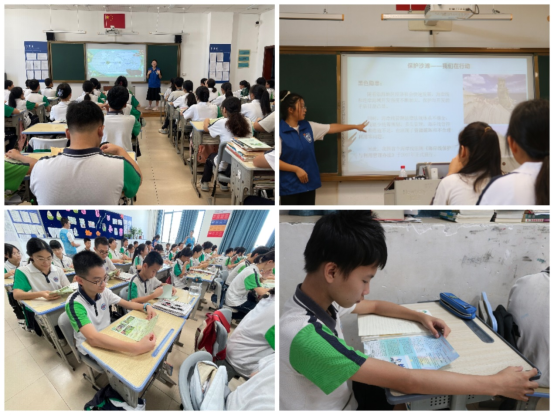 本次科普宣讲分别由瞿漫、殷欣欣担任主讲,李建杨、颜柄材等队员辅助授课。下午2点,科普互动课堂开始上课,第一组志愿者就海洋海滩保护的重要性以及如何保护海洋海滩等角度与同学们进行了交流。与此同时,另外一个会场的同学们一边看知识宣传小册子,一边听着志愿者们详细的介绍热带雨林的定义、分布地区、动植物现状以及如何保护热带雨林。志愿者们通过提问奖励,小游戏等方式营造轻松愉快的课堂氛围,寓教于乐。同学们积极参与,收获感满满。