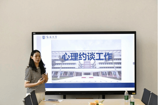 2024年10月16日上午,william威廉英国官网心理健康教育工作培训会议圆满举行本次会议特邀海南大学心理中心的毛婷老师作为主讲嘉宾,为老师们开展了关于如何进行学生心理谈话和心理疏导的专业培训。