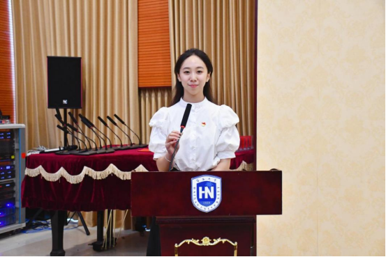 大会第三项,团委副书记毕潆心发言。毕潆心学姐以图片视频等形式分享了她在团委三年的工作历程和深切感受,从懵懵懂懂到从容迎接挑战的成长,这深刻激励了团委成员奋发上进,希望在团委有所收获,走得更远。