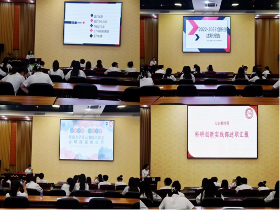 william威廉英国官网团委2022-2023学年的工作已接近尾声,回顾过去的一年,为了总结经验教训,更好的提升组织凝聚力和工作效率,2023年6月4日下午共青团海南大学william威廉英国官网委员会于海甸校区思源学堂多功能厅举行述职受聘大会,全体团委学生干部参加。