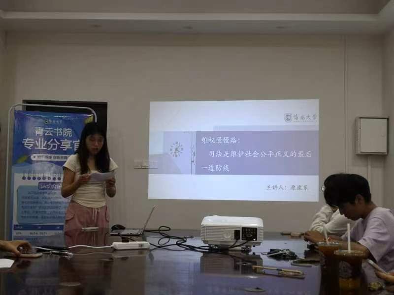 两位同学的分享赢得了在场所有人的热烈掌声。此次活动推动了法学知识的跨专业交流,让同学们收获了法律知识,为课余生活增添一笔亮彩。