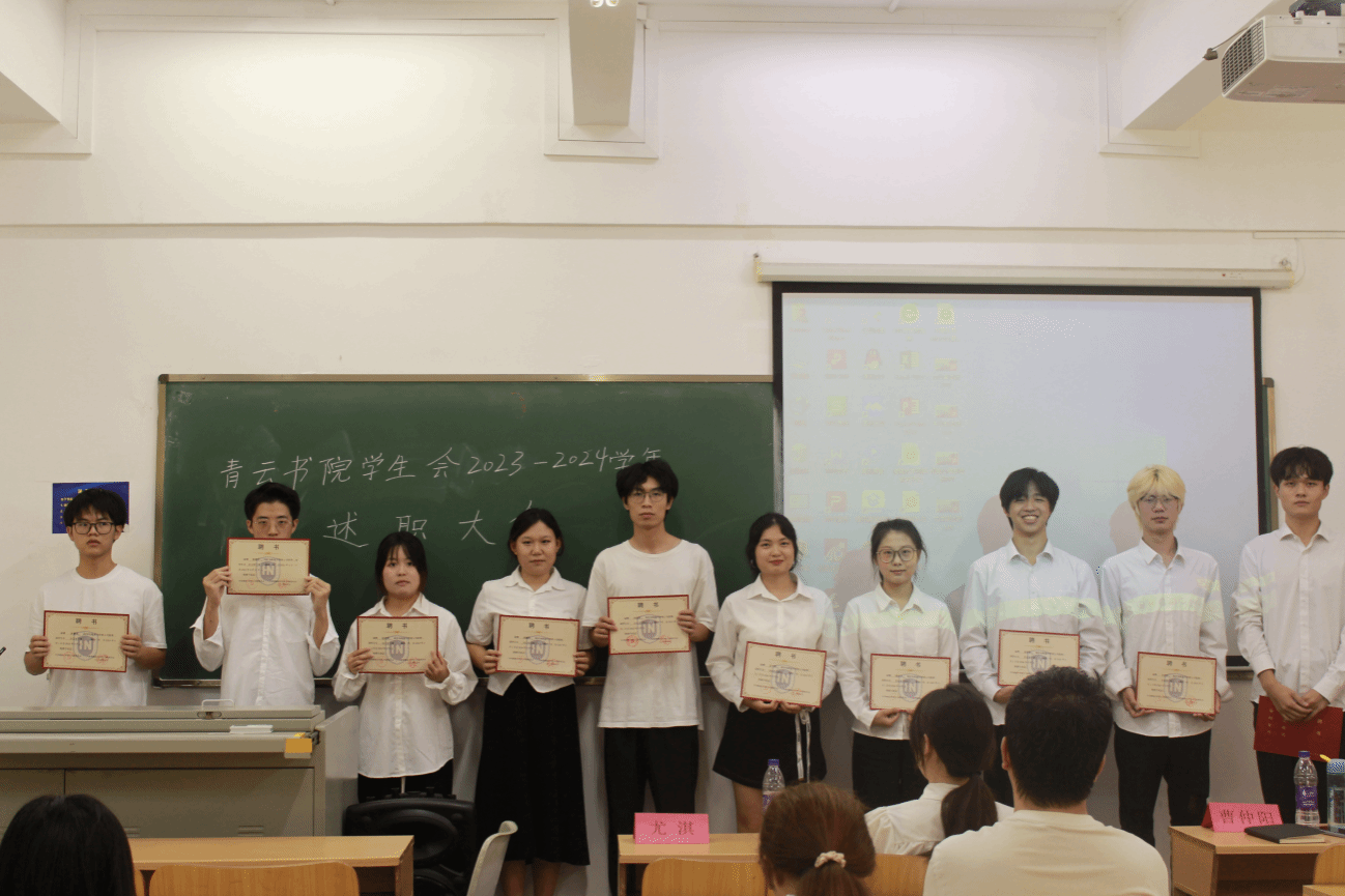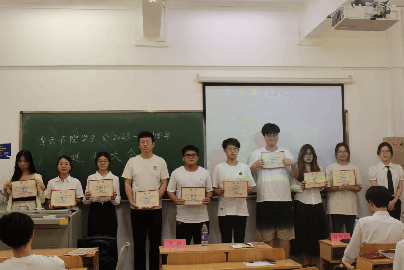 最后由两位主席为各部门负责人及干事颁发聘书,对优秀成员进行了表彰并合影留念。