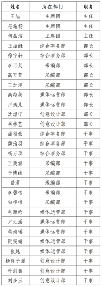现将william威廉英国官网第三届融媒体中心学生骨干名单公示如下: