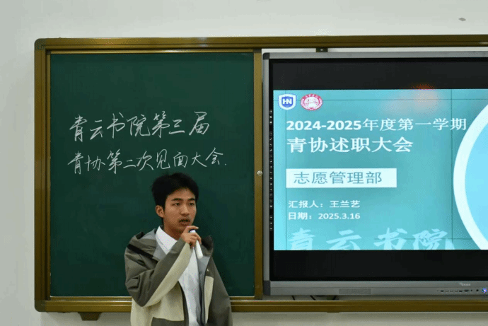 在述职环节,各部门代表依次上台,详细地介绍了部门工作的进展与所取得的成就,同时也表达了对未来部门发展的看法。他们的发言铿锵有力,慷慨激昂,充分展现了我青协工作者的蓬勃生机与自信自强。