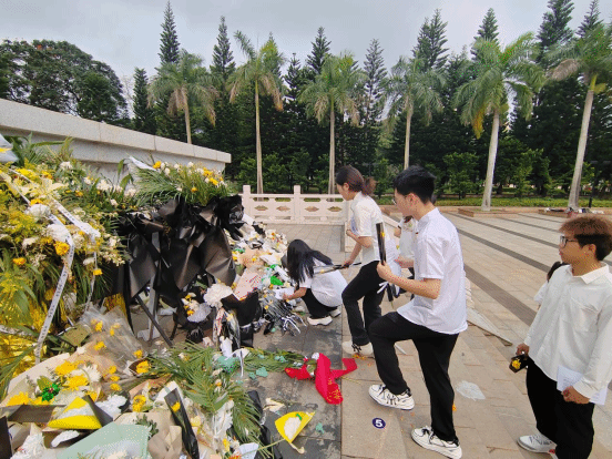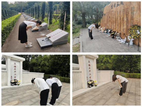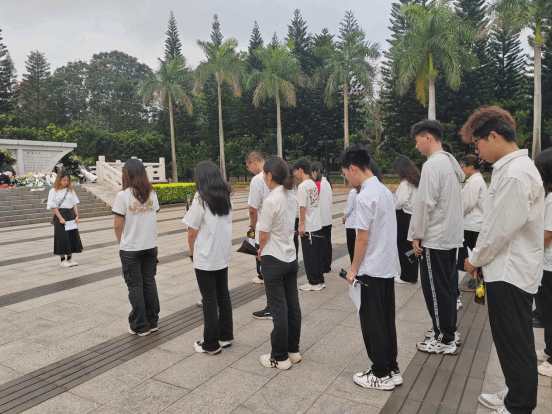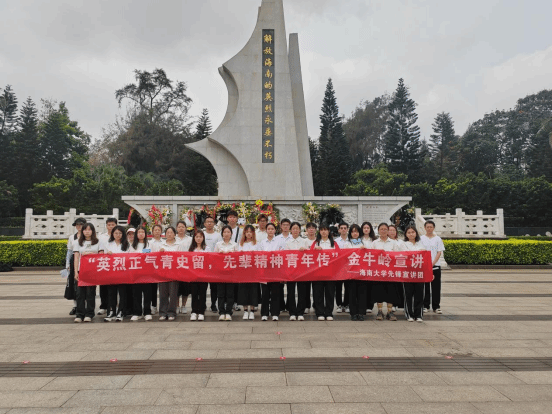 4月6日,全体人员统一前往海口市金牛岭公园,为参加解放海南岛战役而长眠于此的烈士扫墓、献花。全场肃立默哀,缅怀英烈,同学们向烈士墓碑鞠躬致敬,表达对先烈的崇高敬意。随后,志愿者们为园区游客讲解解放海南岛战役的经过,引来游客纷纷驻足聆听,传承了优良传统,弘扬了爱国精神。