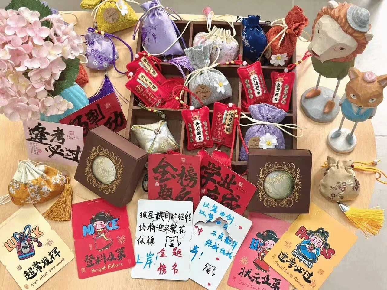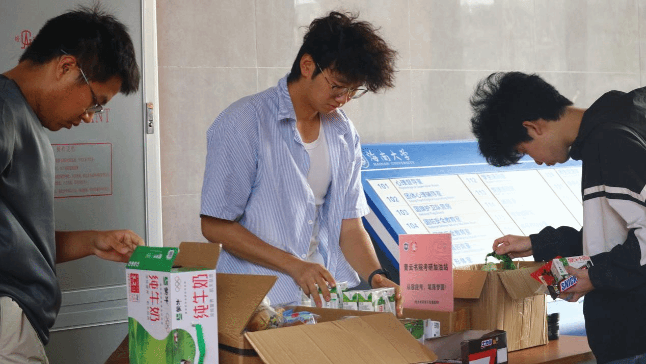 “考研加油站”摆放着牛奶、手撕面包等暖心干货,也为同学们准备了仙贝、士力架等补充能量的小零食。尤为暖心的是,书院特意为每位考研学子准备了寓意平安、静心的手工香囊,以及由学弟学妹们亲手写下的祝福贺卡。一字一句,皆是真情。这些看似微小的礼物,成为了备考路上无声却有力的陪伴,让不少同学感动不已。
