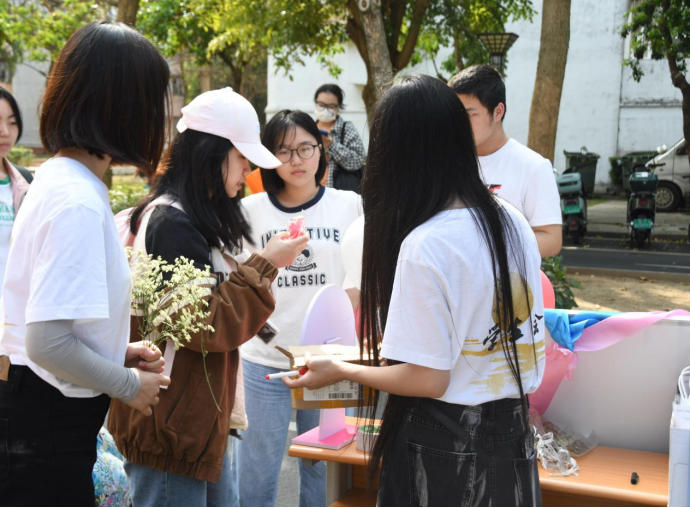 在第一环节结束后大家获得抽奖机会,或是一支娇艳的玫瑰,或是一个精巧的钥匙扣,又或是一个可爱的玩偶,无一不传递着工作人员诚挚的祝福。而一张张满足的笑颜也使这春光明媚的校园更为美丽。