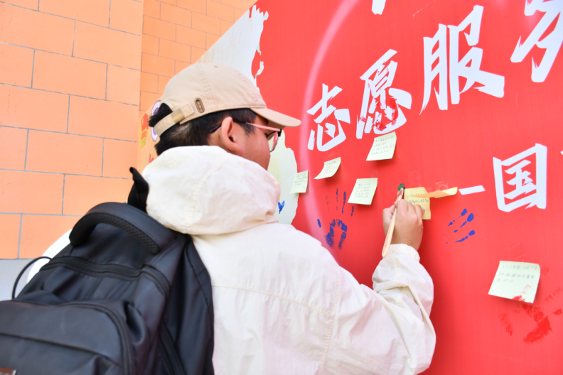 在便利贴留言环节,同学们纷纷分享他们对志愿服务的深刻体验和感激之情,每一张便利贴都承载着他们对志愿精神的认同和赞美,成为了活动现场一道亮丽的风景线。按手印活动更是让每位参与者都留下了独特的印记,这些手印不仅象征着他们对志愿服务的坚定承诺,也标志着他们积极参与的身影。这些手印汇聚成一幅生动的画面,展现了大家对志愿服务的热情和对社会责任的承担。