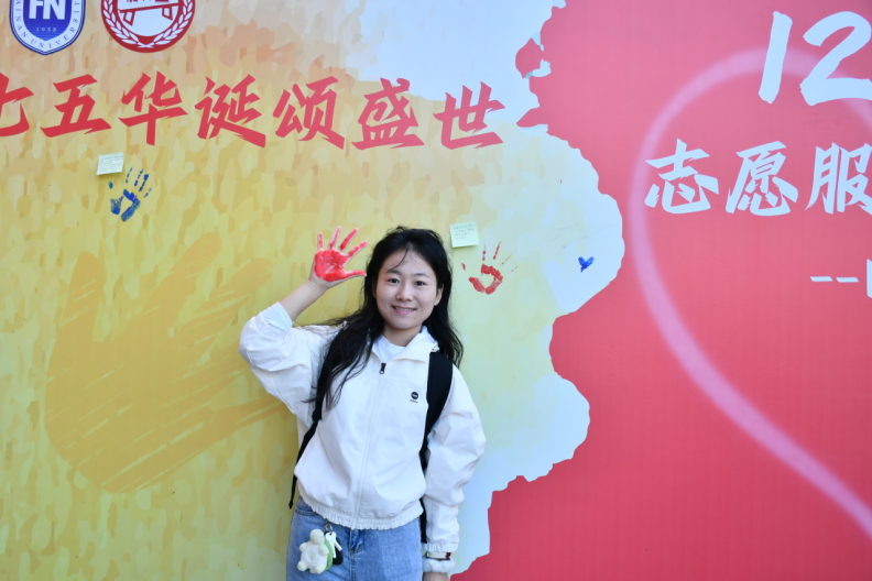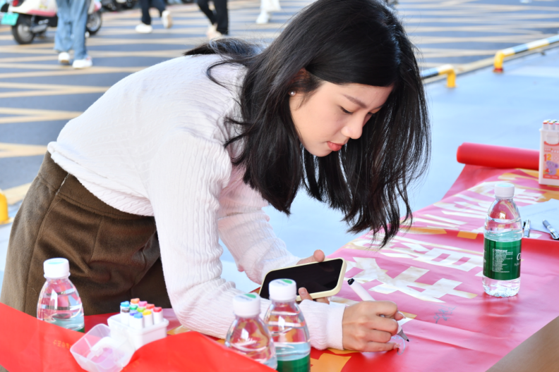 在横幅签名环节,同学们积极响应,热情地在横幅上留下自己的签名,以此表达对国际志愿者日的坚定支持和对新中国75周年华诞的深情祝福。每一笔签名都是对志愿服务精神的赞颂,也是对祖国繁荣发展的祝愿。这些签名汇聚成一条条祝福的河流,承载着青年学子对国家未来的美好期待和对志愿服务事业的无限热忱。