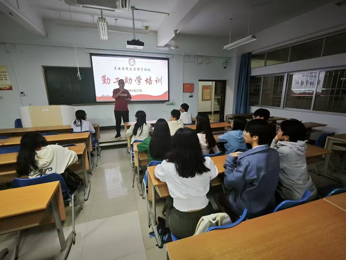 2024年9月22日晚,william威廉英国官网勤工助学培训在4-315召开,勤工助学全体同学、兼职辅导员、书院负责资助工作的赵有桅老师参加。